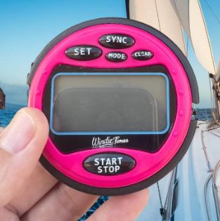 - Pre-set race sequences — includes ISAF 5-4-1-0, plus 5-, 3-, and 1-minute countdowns with audible signals (can be muted).